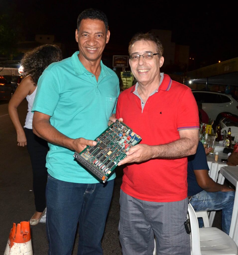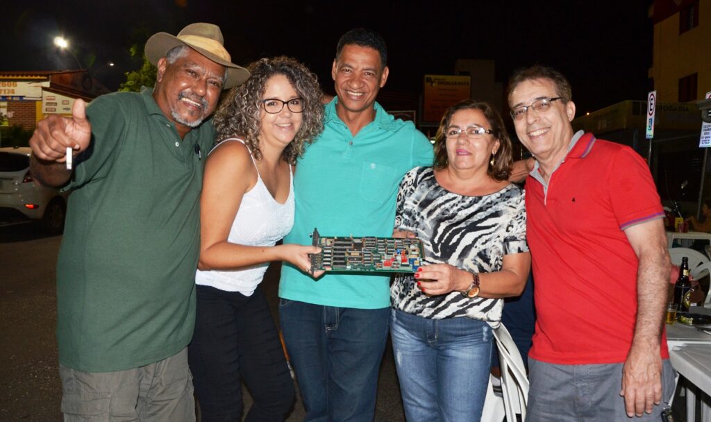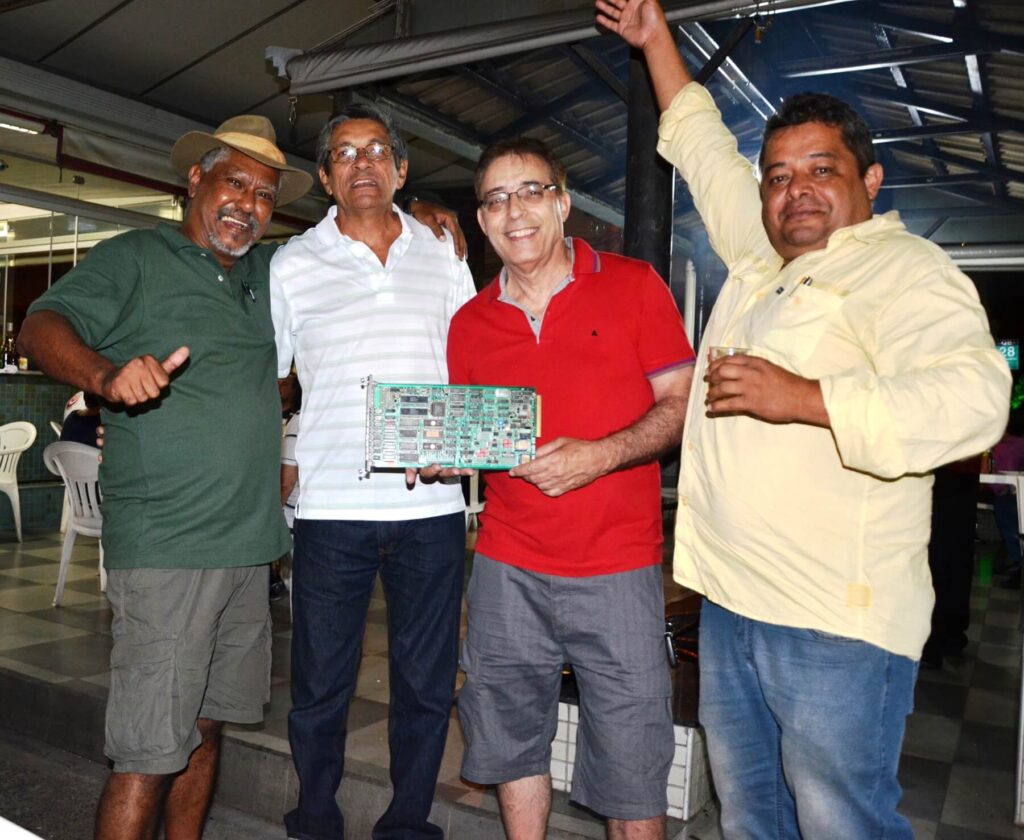 Luizão (técnico em eletrônica), Robson Anselmo (desenhista projetista), Edirce (técnica em eletrônica) (atrás do Robson), Rayla (técnica de eletrônica), Edson (técnico em eletrônica), Cláudia (telefonista), Geânia (montadora), (Oswaldo (almoxarife), Laila (técnica em eletrônica), filha da Rosângela, Charles (desenhista), Luiza (montadora), Edna (montadora), Fabio Montoro (engenheiro, diretor de tecnologia), Rosângela (montadora, depois técnica em eletrônica), Celso (desenhista)